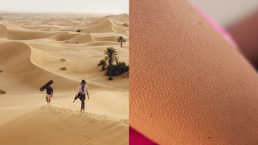Below are a range of examples of capturing this duality, through extreme close-ups of an individual in a moment – for example someones eye in focus or the goosebumps on someones skin, used in conjunction with the location they are in – which reflects the delight, emotion or reaction they are feeling at the given location.